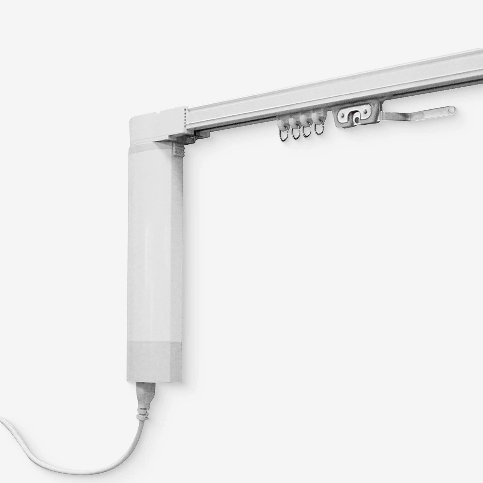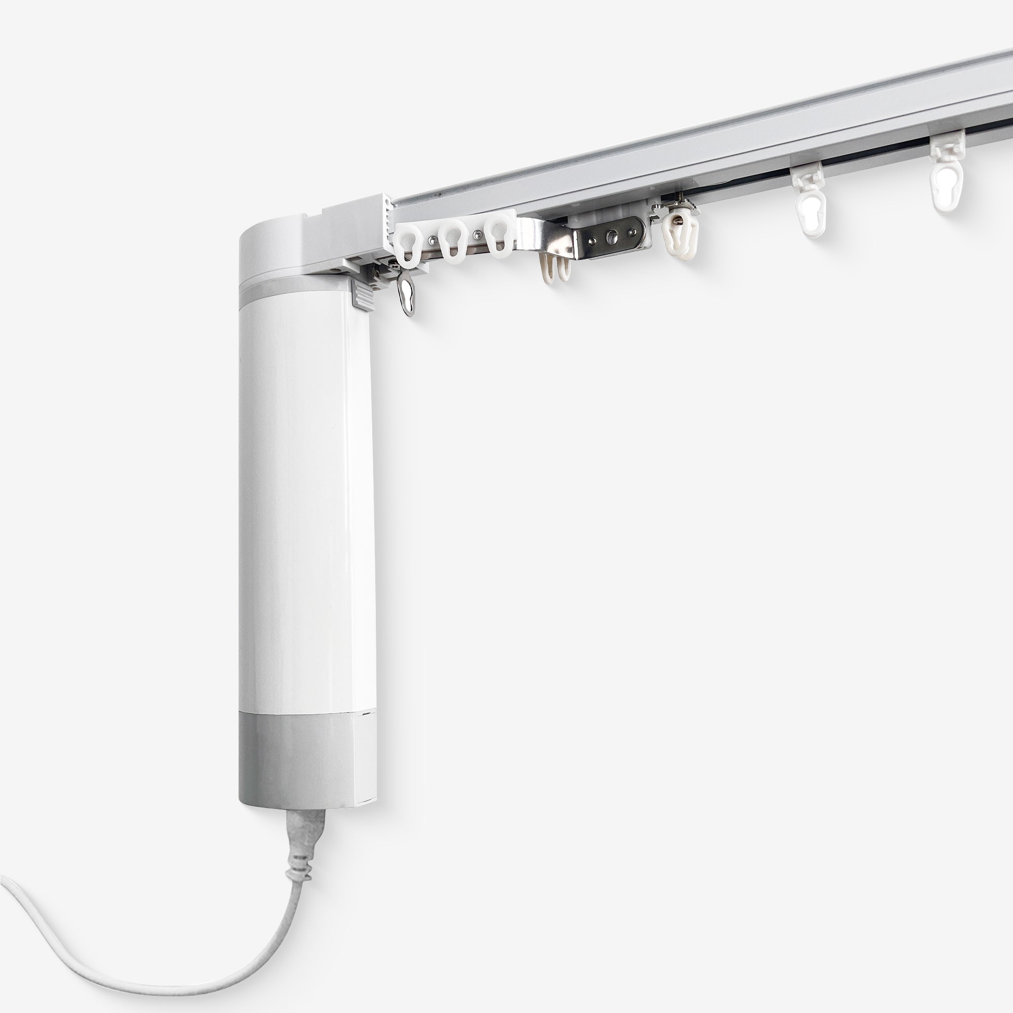 Each track uses a motor with a built-in belt to drive the metal slider to open and close the curtain. Fit pleated header curtains and flat panel header curtains.