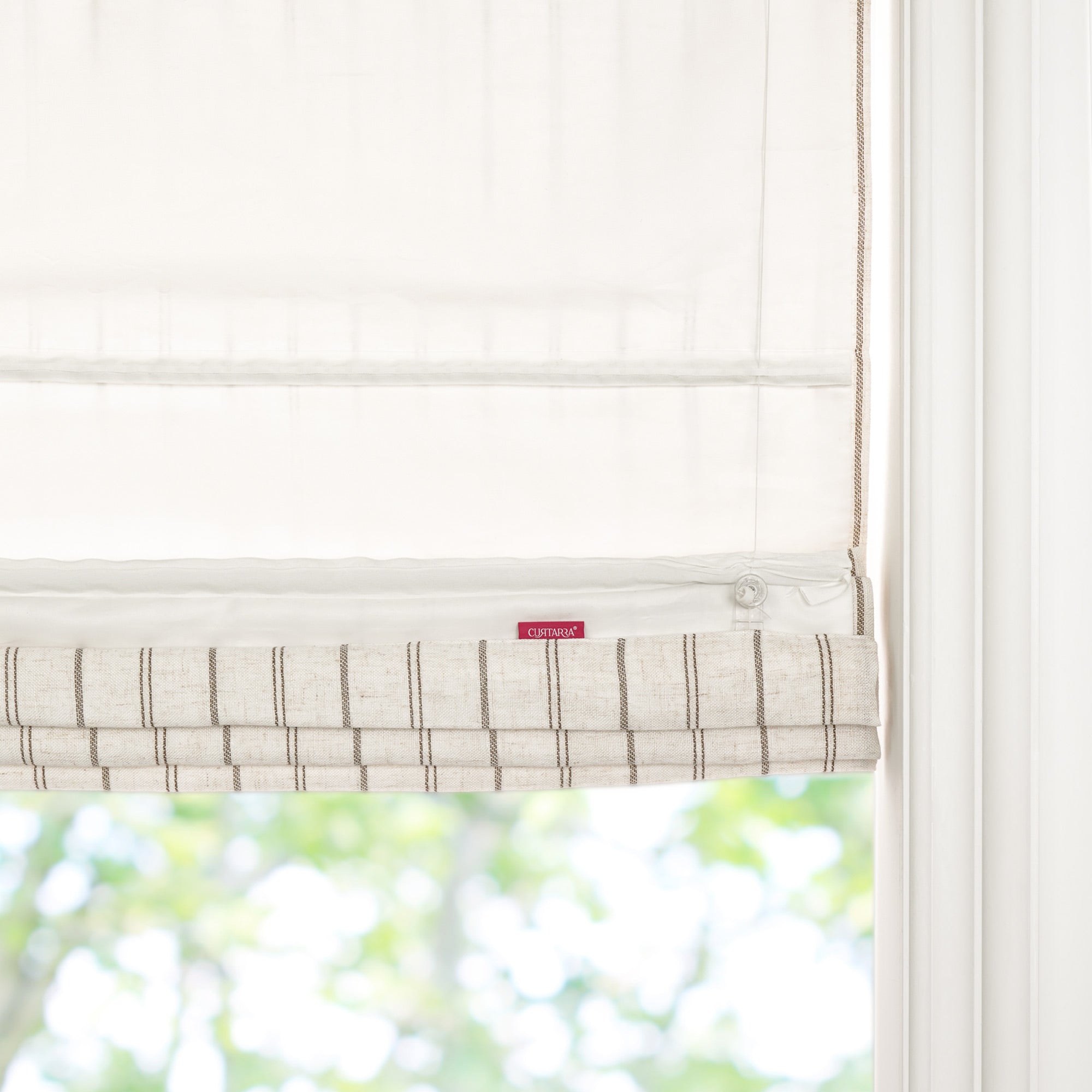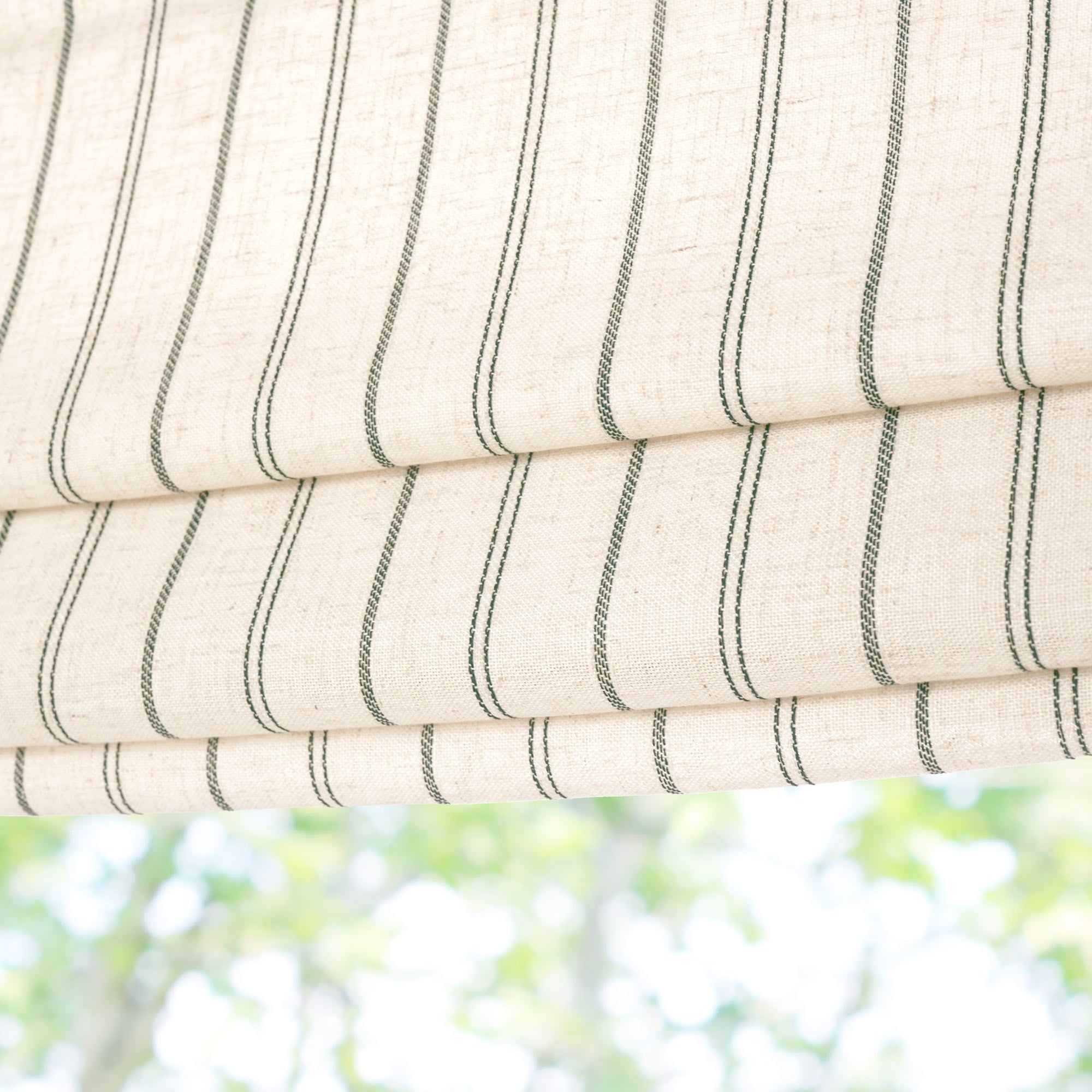 Curtarra offers three lining types for Roman shades: the White Lining (140 GSM) and Cotton Lining (137 GSM), both providing 30% light-blocking, and the heavy-duty White Blackout Lining (240 GSM) for total 100% light-blocking.