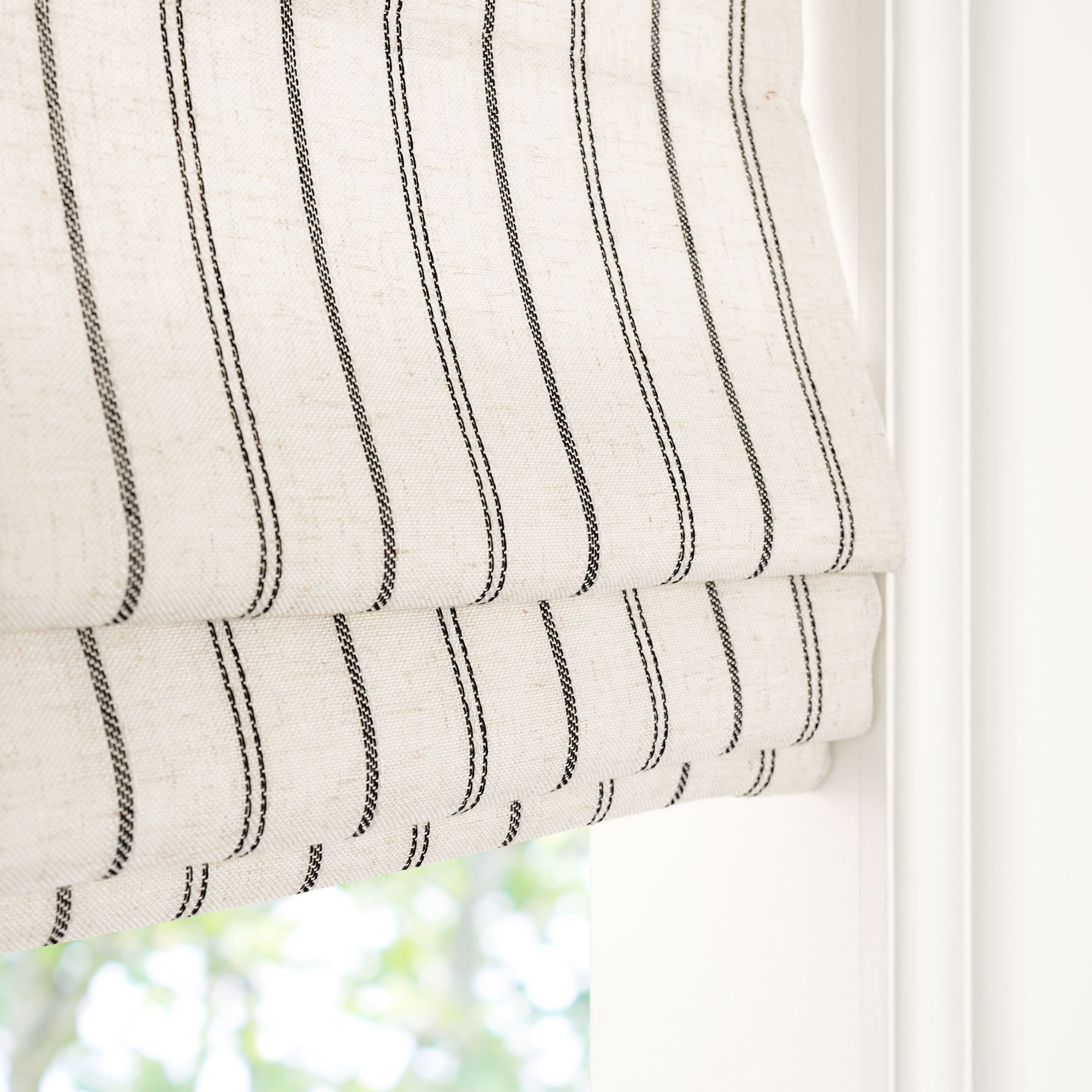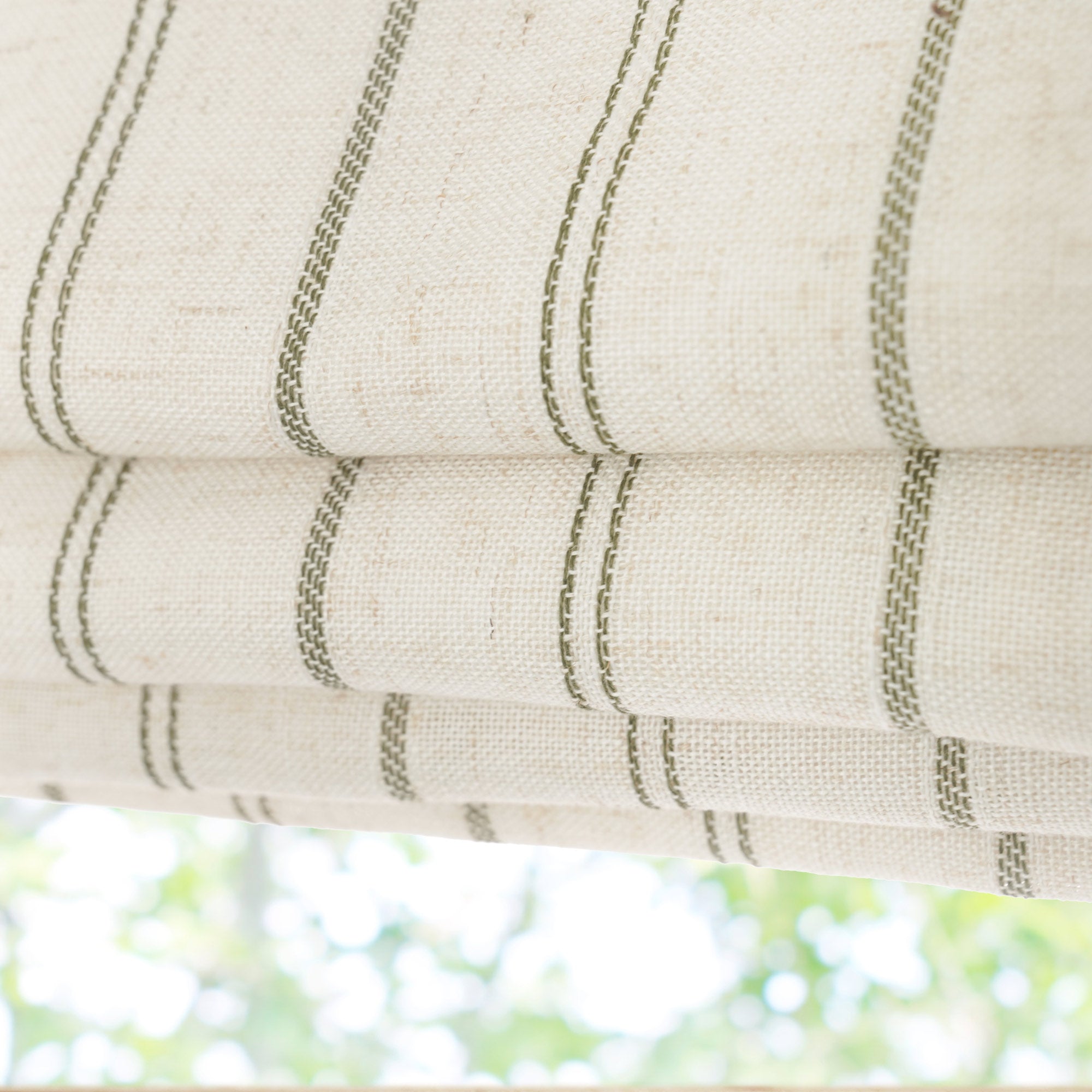 - Roman shades with blackout lining, don't have a swen trace on the center so that the fabric might move, need to train it.