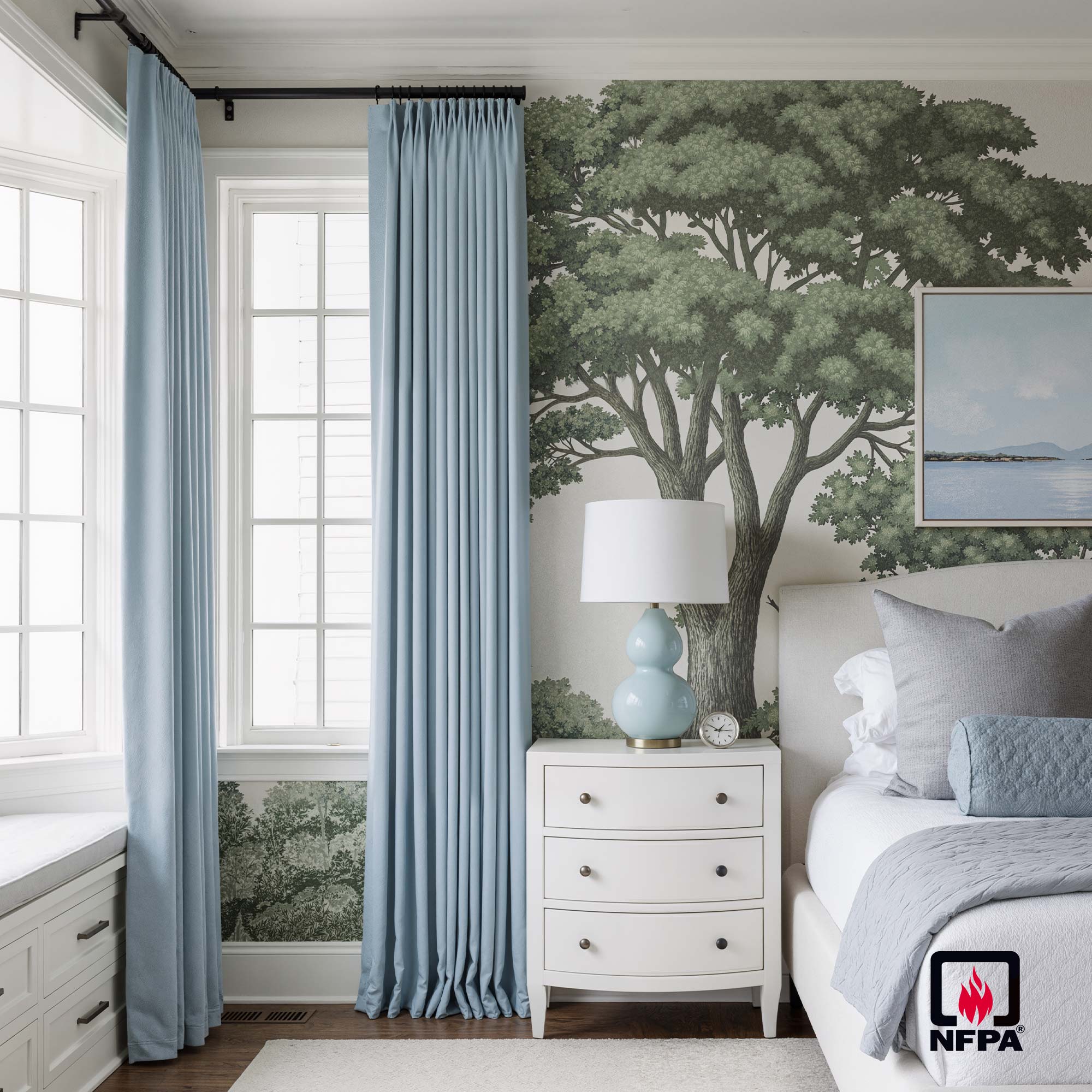 Unlike curtains with chemical coatings that can wash out, ours are inherently fire-safe. The protection is built into the fiber itself—requiring zero additives—so it lasts for life without introducing new risks to your home.